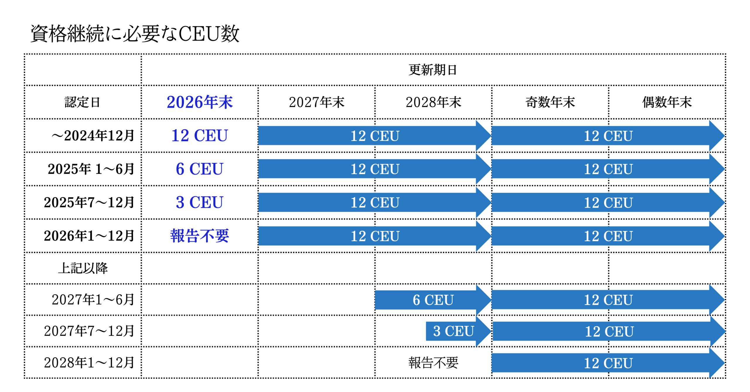 * 試験合格前に再受講 等で取得した CEU は無効です。
